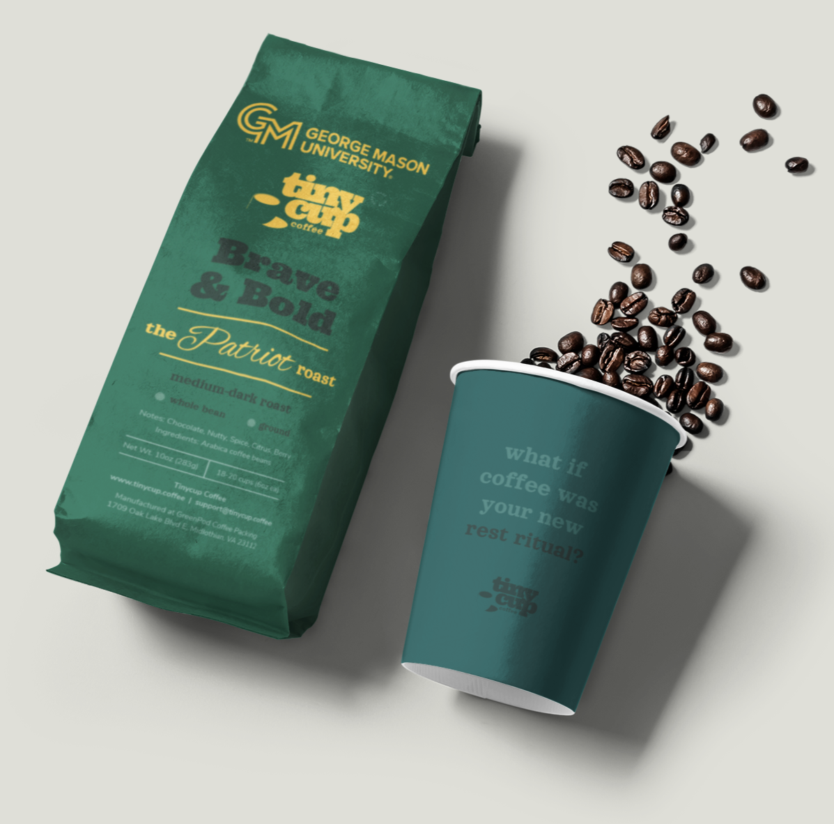 An alumni-owned company, Tinycup Coffee partnered with George Mason to create a special coffee roast dedicated to the "brave and bold". Tinycup's mission is to help everyday people experience coffee as a personally restorative ritual of rest. Launched October 2024, The Patriot Roast is available on-campus and online.